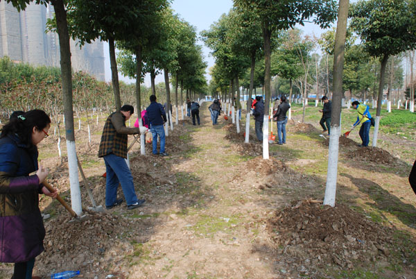 陽春三月,草長鶯飛。在這大地回春,萬物復(fù)蘇之際,房產(chǎn)集團(tuán)公司工會(huì)組織開展了以綠化養(yǎng)護(hù)為主要內(nèi)容的植樹節(jié)活動(dòng)。3月12日上午,公司機(jī)關(guān)及基層各單位職工共30余人帶著鐵鍬等工具,來到國博中心苗圃基地,在基地技術(shù)人員的現(xiàn)場示范、指導(dǎo)下,對(duì)我公司栽種的樟樹、桂花樹、紅葉石楠等樹木進(jìn)行了養(yǎng)護(hù)。