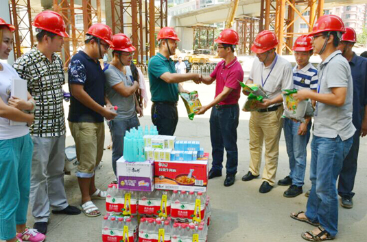 8月3日,公司領(lǐng)導(dǎo)班子成員帶領(lǐng)工會(huì)、綜合部、工程監(jiān)理管理人員分赴一線,為一線員工送去礦泉水、綠豆、花露水等防暑降溫物品。
