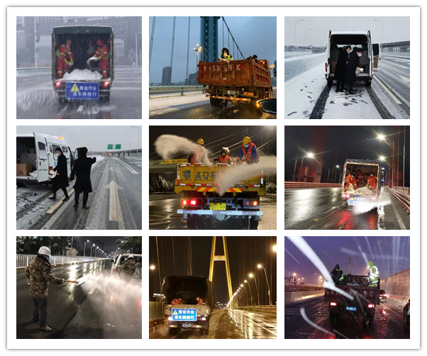 公司承擔(dān)全市13座跨江橋梁以及三環(huán)線東段、北段、南段共計(jì)84.7公里路段的融雪防凍任務(wù)。組織所屬城運(yùn)公司、天興洲道橋公司、橋建集團(tuán)、鐵投公司、譽(yù)城集團(tuán)等單位成立應(yīng)急搶險(xiǎn)隊(duì)伍,調(diào)配312人,機(jī)械設(shè)備50臺(tái),全方位做好融雪除冰工作。此外,公司所屬新區(qū)公司、臨空投集團(tuán)還分別支援和承擔(dān)漢陽(yáng)國(guó)博中心洲際酒店上下匝道、臨空新城和巨龍大道立交及附近區(qū)域內(nèi)路段的融雪防凍任務(wù),保障防疫應(yīng)急工作車輛正常通行。